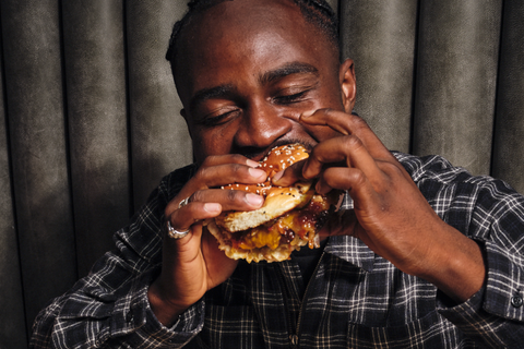 Auf der Suche nach pflanzlichen Optionen? Probier unseren Plant Powered Punk mit einem Redefine-Meat-Patty, pflanzlichem Steaky Bacon, veganem Cheddar, Pickles, roten Zwiebeln, Salat und BBQ-Sauce; oder unseren What The Cluck, vollgepackt mit Tindle’s knusprigem Chicken, veganer Mayo, Salat, roten Zwiebeln und Pickles.