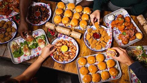 Festliche Mini Burger, Wings, Xmas Loaded Fries, weihnachtlicher Salat mit kandierten Nüssen, … Wer auf der Suche nach dem ultimativen Weihnachtsbuffet ist, ist bei uns genau richtig!